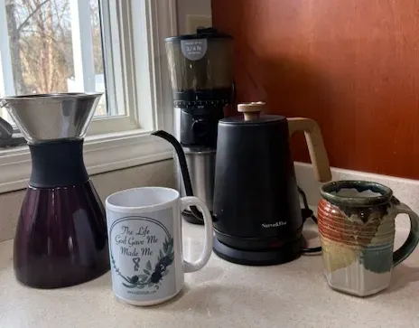 We have a grinder, an electric kettle, and the pour-over system. The flavor is amazing. When you go to a coffee shop, ask for a cup and see if you can taste the difference. It is well worth it.