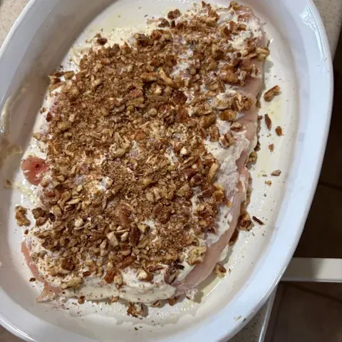 The pecan chicken is quite amazing. This is before it was baked. As you can see