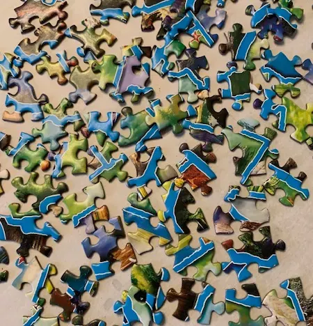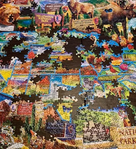Have you worked on a puzzle lately? If so, you know the challenge. Pieces come in unique shapes and sizes. One piece can sport more colors than a box of Crayola crayons. When I spread out the 1500 pieces of a puzzle of National Parks complete with critters all over the dining room table, I wondered if an insanity gene popped into my head.